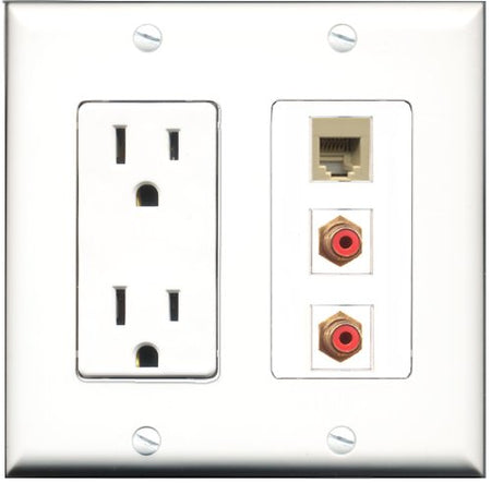 RiteAV - 15 Amp Power Outlet 2 Port RCA Red 1 Port Phone Beige Decorative Wall Plate
