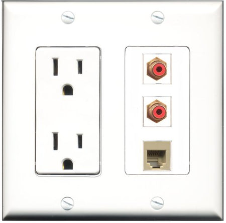 RiteAV - 15 Amp Power Outlet 2 Port RCA Red 1 Port Phone Beige Decorative Wall Plate