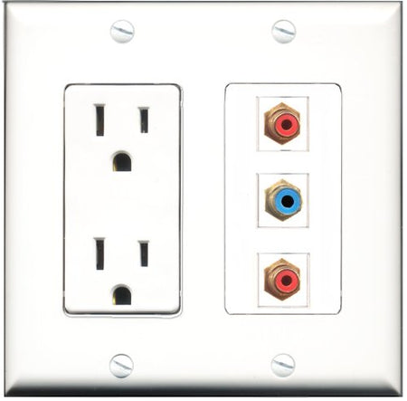 RiteAV - 15 Amp Power Outlet 2 Port RCA Red 1 Port RCA Blue Decorative Wall Plate