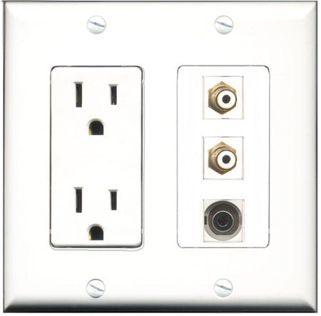 RiteAV - 15 Amp Power Outlet 2 Port RCA White 1 Port 3.5mm Decorative Wall Plate