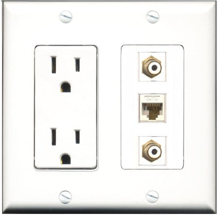 RiteAV - 15 Amp Power Outlet 2 Port RCA White 1 Port Cat6 Ethernet Ethernet White Decorative Wall Plate