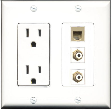 RiteAV - 15 Amp Power Outlet 2 Port RCA White 1 Port Phone Beige Decorative Wall Plate