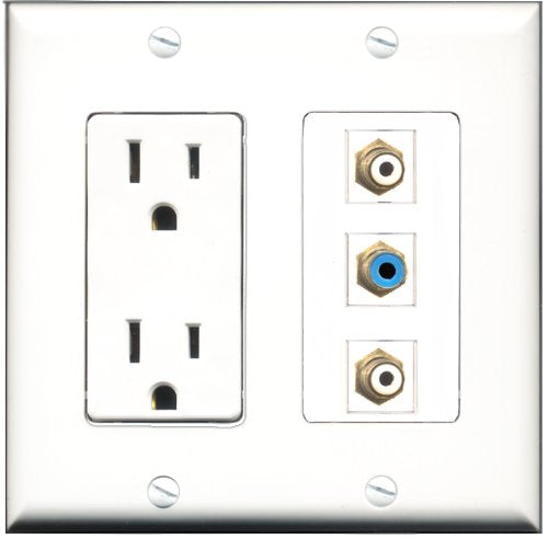 RiteAV - 15 Amp Power Outlet 2 Port RCA White 1 Port RCA Blue Decorative Wall Plate