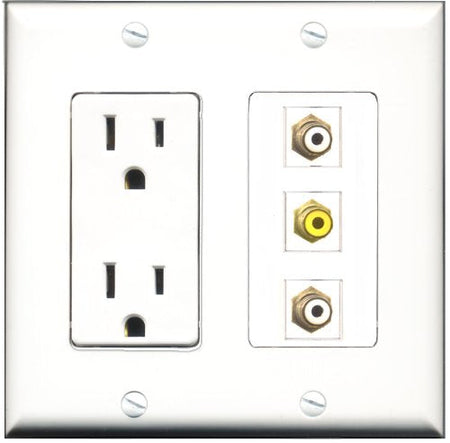 RiteAV - 15 Amp Power Outlet 2 Port RCA White 1 Port RCA Yellow Decorative Wall Plate