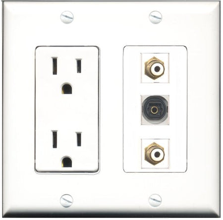 RiteAV - 15 Amp Power Outlet 2 Port RCA White 1 Port Toslink Decorative Wall Plate