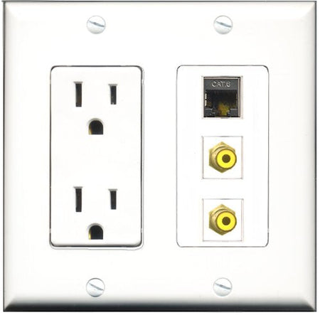 RiteAV - 15 Amp Power Outlet 2 Port RCA Yellow 1 Port Shielded Cat6 Ethernet Ethernet Decorative Wall Plate