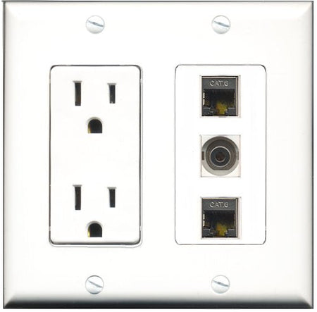 RiteAV - 15 Amp Power Outlet 2 Port Shielded Cat6 Ethernet Ethernet 1 Port 3.5mm Decorative Wall Plate