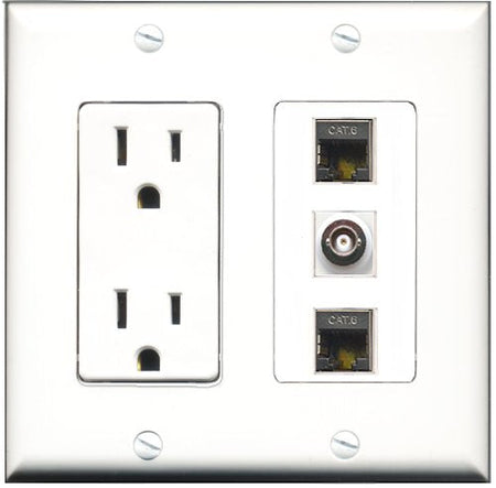 RiteAV - 15 Amp Power Outlet 2 Port Shielded Cat6 Ethernet Ethernet 1 Port BNC Decorative Wall Plate