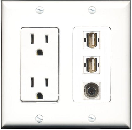 RiteAV - 15 Amp Power Outlet 2 Port USB A-A 1 Port 3.5mm Decorative Wall Plate