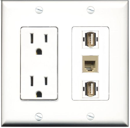 RiteAV - 15 Amp Power Outlet 2 Port USB A-A 1 Port Phone Beige Decorative Wall Plate