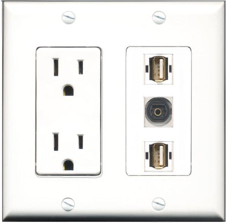 RiteAV - 15 Amp Power Outlet 2 Port USB A-A 1 Port Toslink Decorative Wall Plate