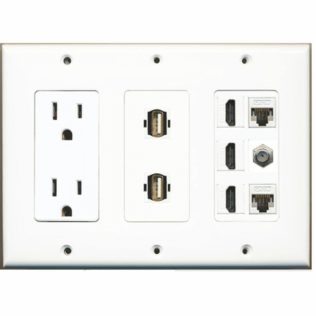 RiteAV 15 Amp Power Outlet 2 USB - 3 HDMI 2 Ethernet 1 Coax Cable TV Wall Plate