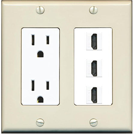 RiteAV - 15 Amp Power Outlet 3 Port HDMI Decorative Wall Plate - Light Almond/White