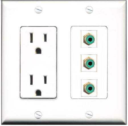 RiteAV - 15 Amp Power Outlet 3 Port RCA Green Decorative Wall Plate