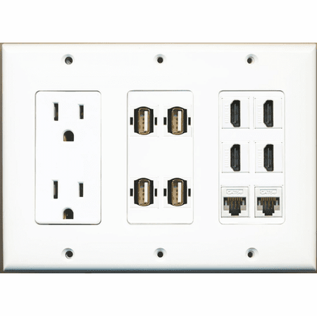 RiteAV 15A 125V Power Outlets + 4 USB A-A 4 x HDMI and 2 CAT5e Port Wall Plate