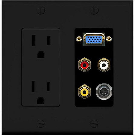 RiteAV (2 Gang) 15A Power Outlet Svga Composite 3.5mm Wall Plate Black