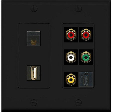 RiteAV (2 Gang) Composite USB HDMI Cat6 RCA Red/Green Wall Plate Black