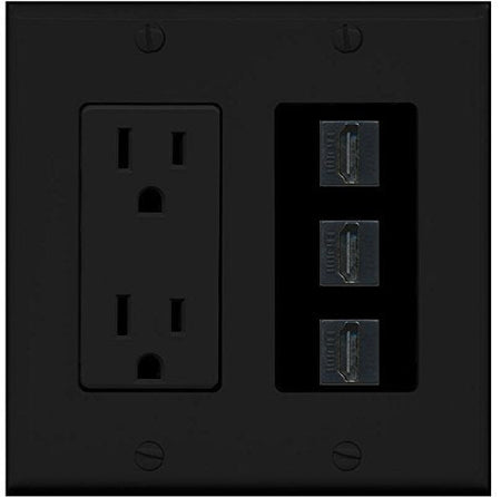 RiteAV - (2 Gang Decorative) 15A Power Outlet 3 HDMI Black Wall Plate Black