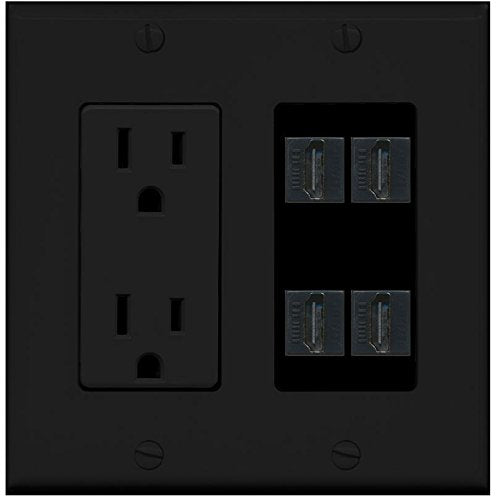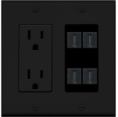 RiteAV - (2 Gang Decorative) 15A Power Outlet 4 HDMI Black Wall Plate Black