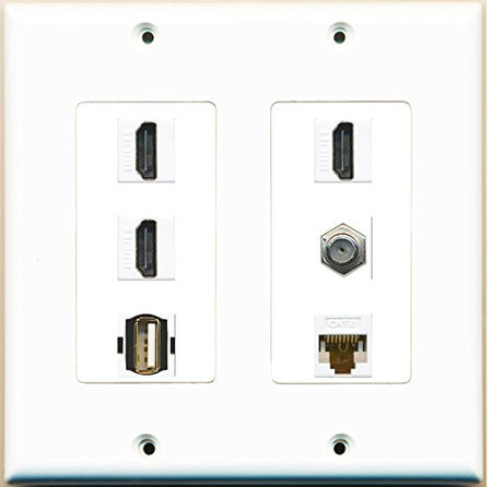 RiteAV (2 Gang Decorative) 3 HDMI Coax Cat6 White USB A-A Wall Plate White