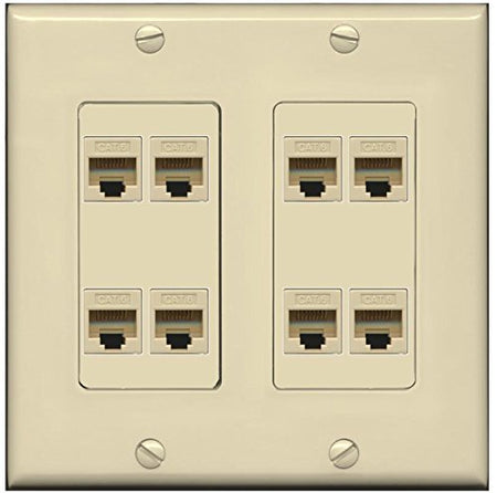 RiteAV (2 Gang Decorative) 8 Cat6 Ethernet Wall Plate Ivory