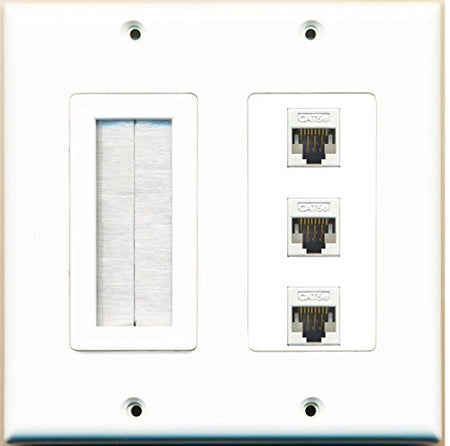 RiteAV (2 Gang Decorative) Mesh-Brush 3 Cat5e White Wall Plate White