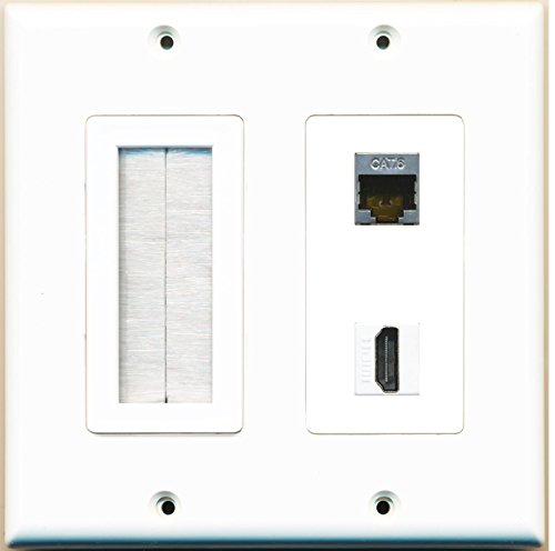 RiteAV (2 Gang Decorative) Mesh-Brush HDMI Shielded Cat6 Wall Plate White
