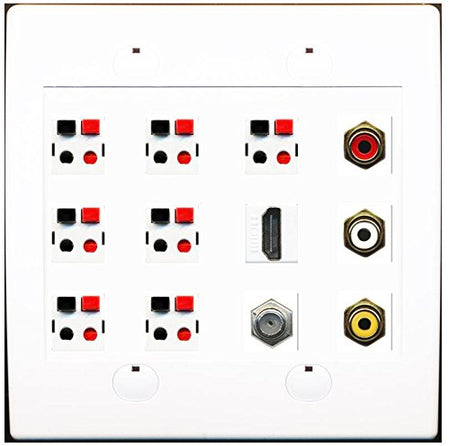 RiteAV (2 Gang Flat) HDMI Coax Composite Video 7 Speaker Jack Wall Plate White