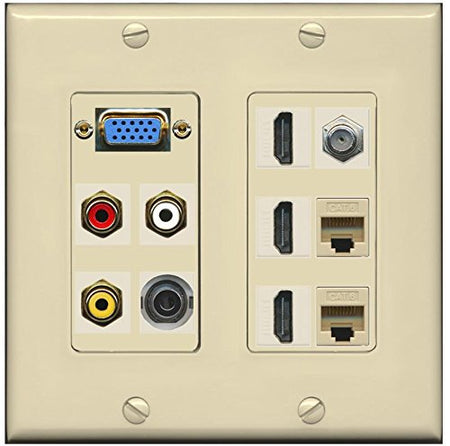 RiteAV (2 Gang) Svga Composite 3.5mm 3 HDMI Coax 2 Cat6 Wall Plate Ivory