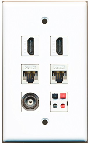 RiteAV - 2 HDMI 1 Port BNC 2 Port Cat5e Ethernet White 1 Port Speaker Wall Plate
