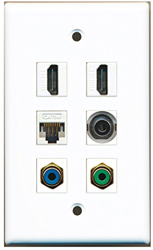 RiteAV - 2 HDMI 1 Port RCA Green 1 Port RCA Blue 1 Port 3.5mm 1 Port Cat5e Ethernet White Wall Plate