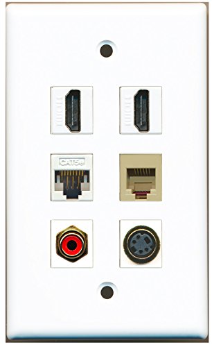 RiteAV - 2 HDMI 1 Port RCA Red 1 Port Phone RJ11 RJ12 Beige 1 Port S-Video 1 Port Cat5e Ethernet White Wall Plate