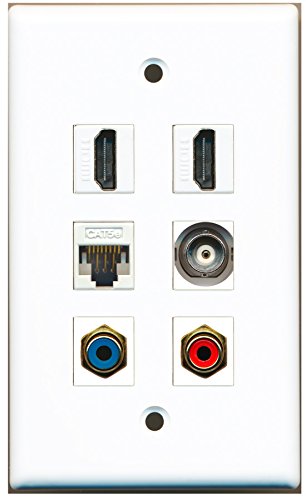 RiteAV - 2 HDMI 1 Port RCA Red 1 Port RCA Blue 1 Port BNC 1 Port Cat5e Ethernet White Wall Plate