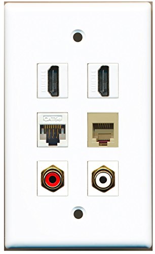 RiteAV - 2 HDMI 1 Port RCA Red 1 Port RCA White 1 Port Phone RJ11 RJ12 Beige 1 Port Cat5e Ethernet White Wall Plate