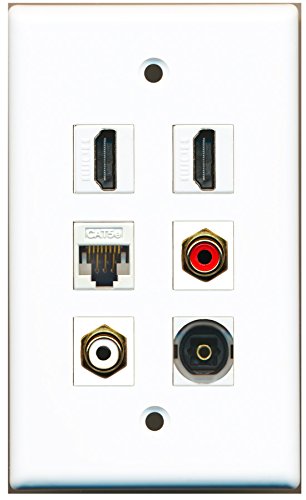 RiteAV - 2 HDMI 1 Port RCA Red 1 Port RCA White 1 Port Toslink 1 Port Cat5e Ethernet White Wall Plate