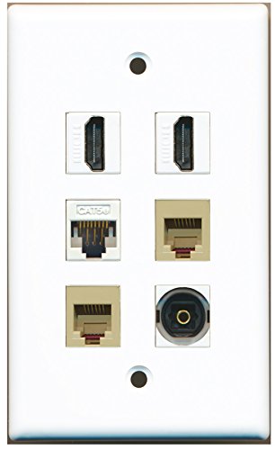 RiteAV - 2 HDMI 2 Port Phone RJ11 RJ12 Beige 1 Port Toslink 1 Port Cat5e Ethernet White Wall Plate