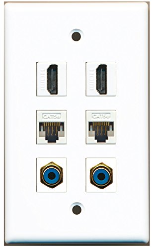 RiteAV - 2 HDMI 2 Port RCA Blue 2 Port Cat5e Ethernet White Wall Plate