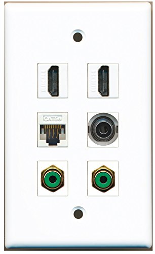 RiteAV - 2 HDMI 2 Port RCA Green 1 Port 3.5mm 1 Port Cat5e Ethernet White Wall Plate