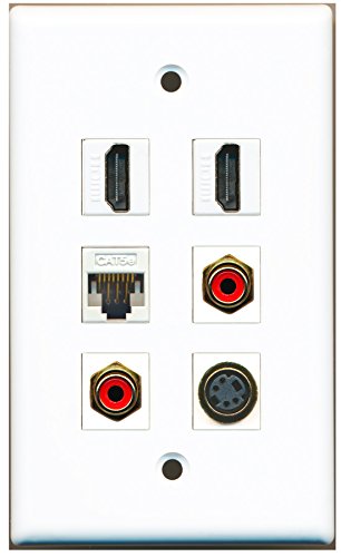 RiteAV - 2 HDMI 2 Port RCA Red 1 Port S-Video 1 Port Cat5e Ethernet White Wall Plate