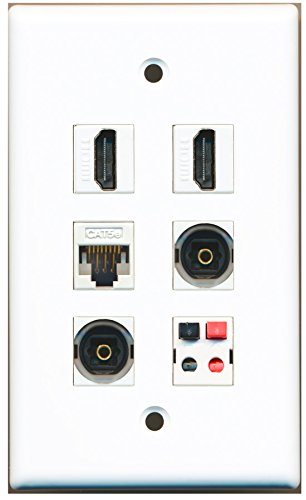 RiteAV - 2 HDMI 2 Port Toslink 1 Port Cat5e Ethernet White 1 Port Speaker Wall Plate