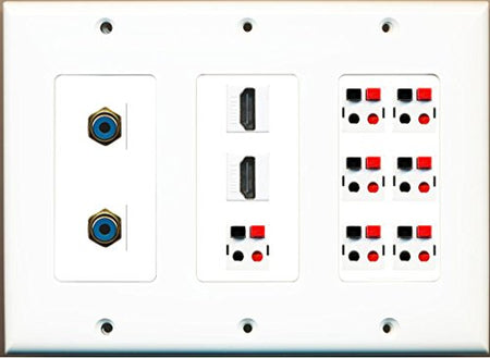 RiteAV 2 HDMI 2 RCA Blue 7 Speaker Jack 7.2 Wall Plate Decorative White