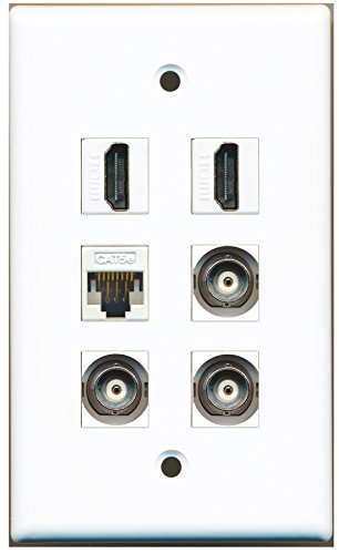 RiteAV - 2 HDMI 3 Port BNC 1 Port Cat5e Ethernet White Wall Plate