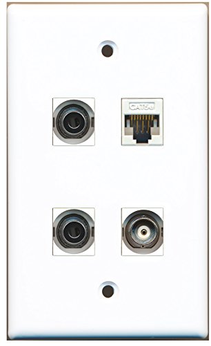 RiteAV - 2 Port 3.5mm 1 Port BNC 1 Port Cat5e Ethernet White Wall Plate