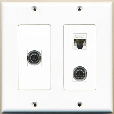 RiteAV - 2 Port 3.5mm 1 Port Cat5e Ethernet White - 2 Gang Wall Plate