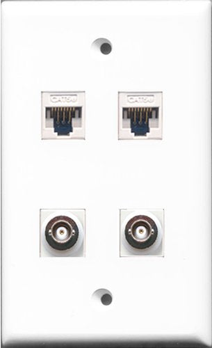RiteAV - 2 Port BNC 2 Port Cat5e Ethernet White Wall Plate