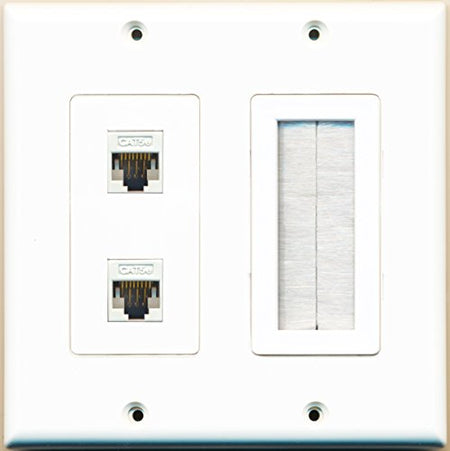 RiteAV - 2 Port Cat5e Ethernet Female + 1 Brush Port Wall Plate Decorative