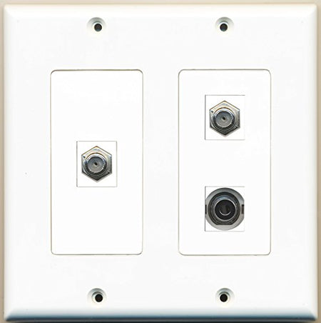 RiteAV - 2 Port Coax Cable TV- F-Type 1 Port 3.5mm - 2 Gang Wall Plate