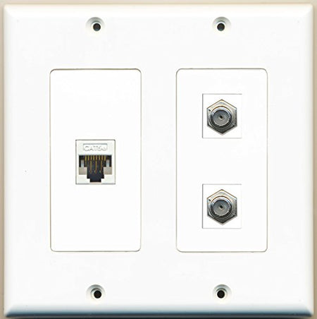 RiteAV - 2 Port Coax Cable TV- F-Type 1 Port Cat5e Ethernet White - 2 Gang Wall Plate
