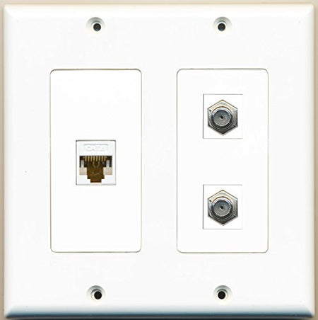 RiteAV - 2 Port Coax Cable TV- F-Type 1 Port Cat6 Ethernet White - 2 Gang Wall Plate