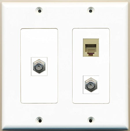 RiteAV - 2 Port Coax Cable TV- F-Type 1 Port Phone RJ11 RJ12 Beige - 2 Gang Wall Plate